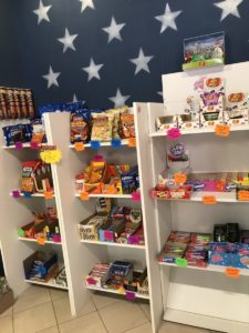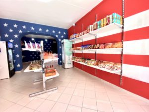 Nel negozio si può trovare la FANTA ALLA FRAGOLA , ANANAS, POMPELMO E CILIEGIA, gli ENERGY DRINK MTM DEW e i DR PEPPER e i famosi cioccolatini REESE’S e tutta la gamma M&M’S.
